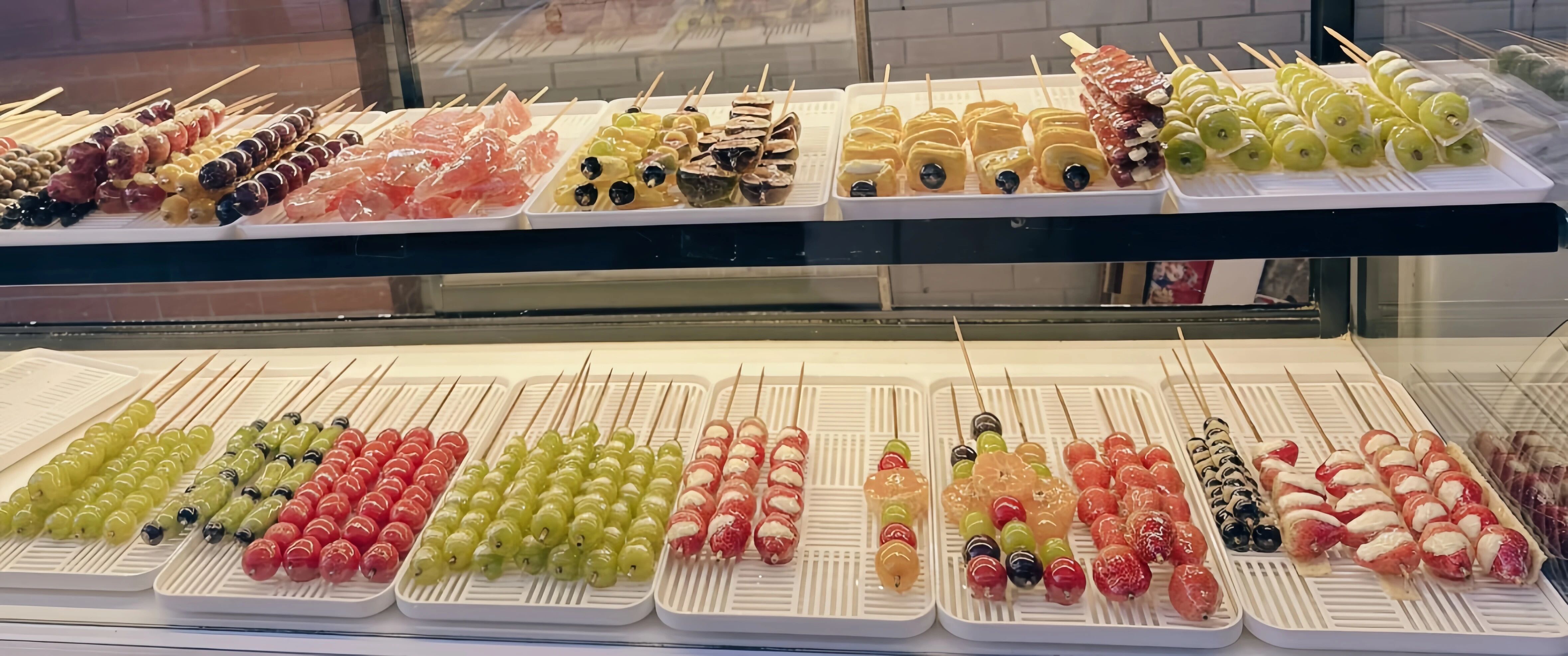 纯手工鲜果糖葫芦:晶莹糖壳包裹新鲜山楂,酸甜开胃,一口找回童年温暖;网红奶皮子糖葫芦:奶皮子搭配酸甜山楂,口感丰富甜而不腻;固体杨枝甘露:绵密口感,浓郁果香,每一口都是甜蜜温暖~用这些甜蜜小食,为你的冬日生活加一点糖吧~