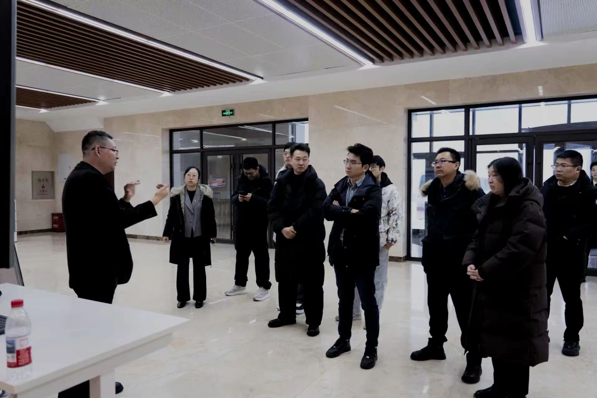考察团在我校师生的热情引导下,率先走进图书馆一楼展示厅。雪花轻吻窗棂,厅内暖意融融,考察团成员认真聆听我校产学研一体化发展布局介绍,从校企共建实训基地的运行模式到协同创新成果的转化成效,从人才培养模式的改革实践到产业服务能力的持续提升,每一个细节都引发了大家的浓厚兴趣。他们不时驻足询问、交流探讨,对我校立足区域产业需求、深耕职业教育的务实路径给予高度认可,雪色映衬下的交流场景格外温馨。