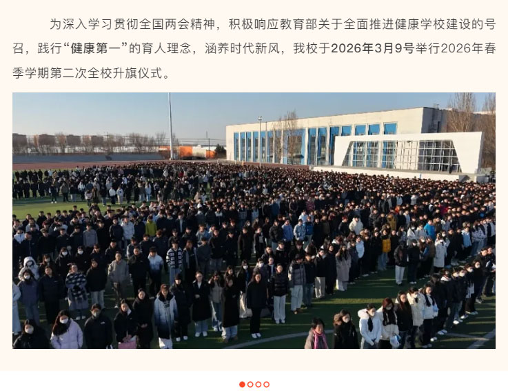 为深入学习贯彻全国两会精神,积极响应教育部关于全面推进健康学校建设的号召,践行“健康第一”的育人理念,涵养时代新风,我校于2026年3月9号举行2026年春季学期第二次全校升旗仪式。