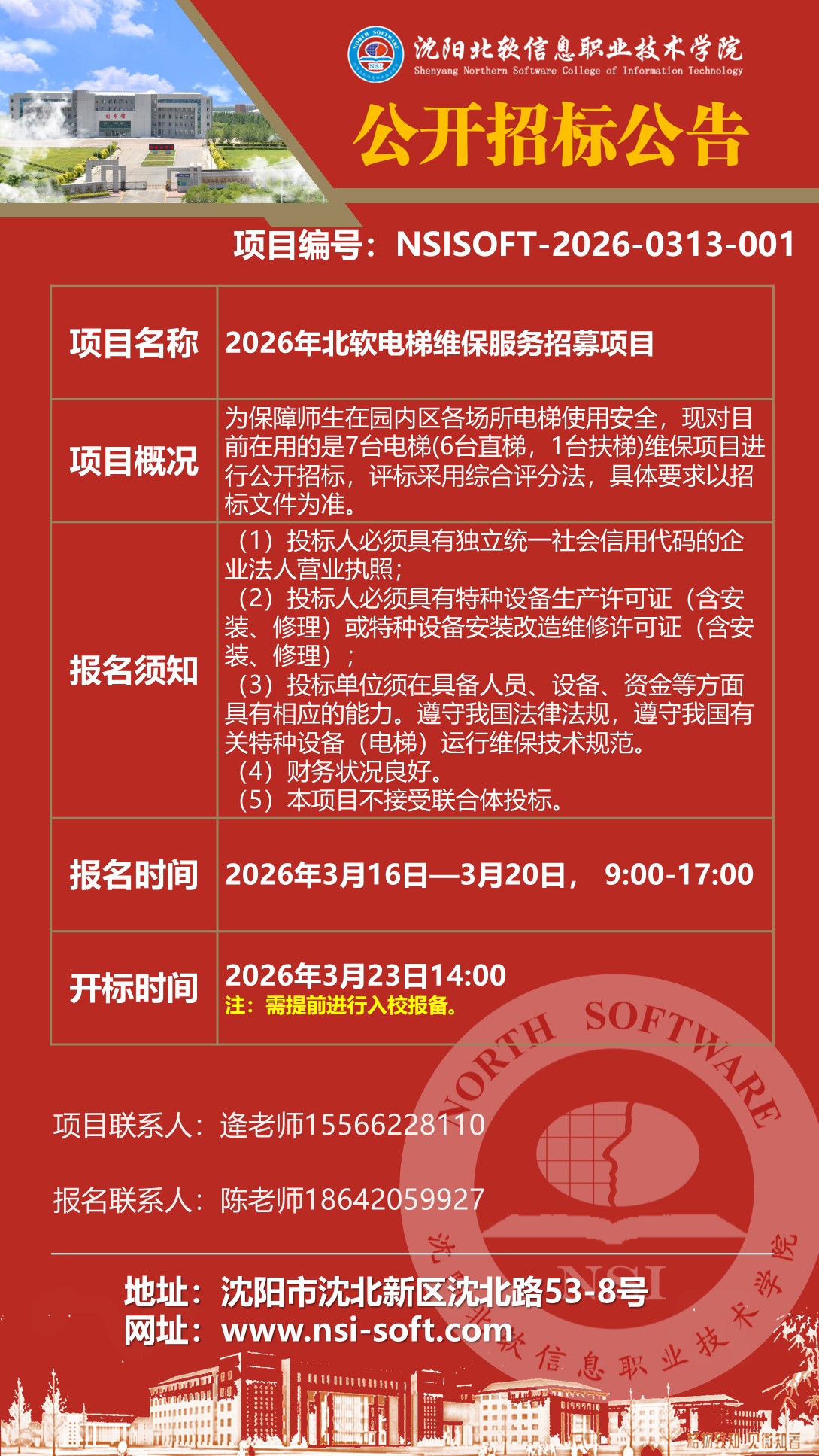 【3月20日截止报名】2026年北软电梯维保服务招募项目公开招标公告
