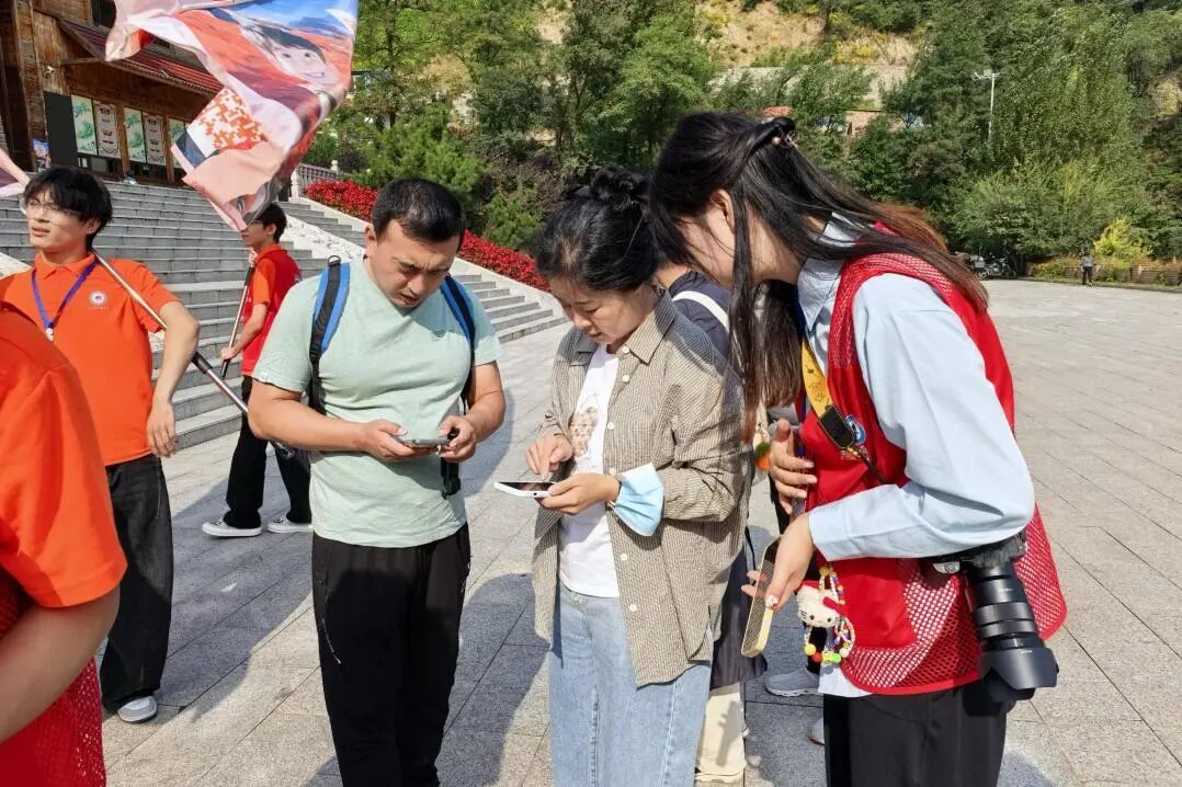 同时,他们还耐心为过往游客提供细致的文旅指导,积极向游客们推广使用 000 号 AI 智能助手 “小北”,借助科技的力量,为游客提供更高效、便捷的服务,让智慧与志愿温情相伴。