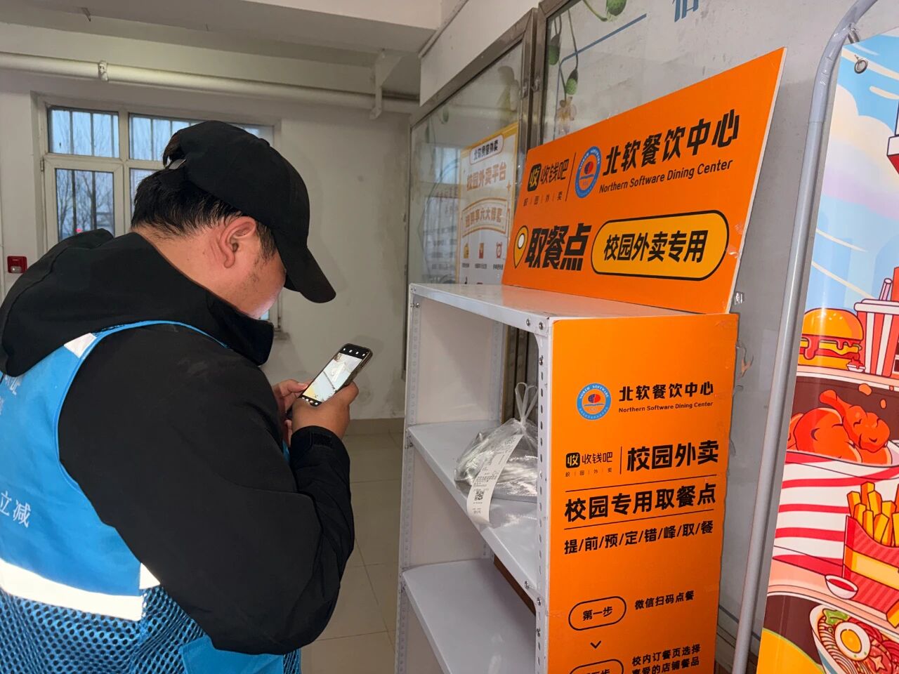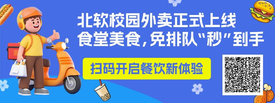 天冷了,不想出寝室?完全没问题!北软餐饮中心校园配送的外卖服务已全面上线!动动手指,温暖美食直接送到你寝室楼下。