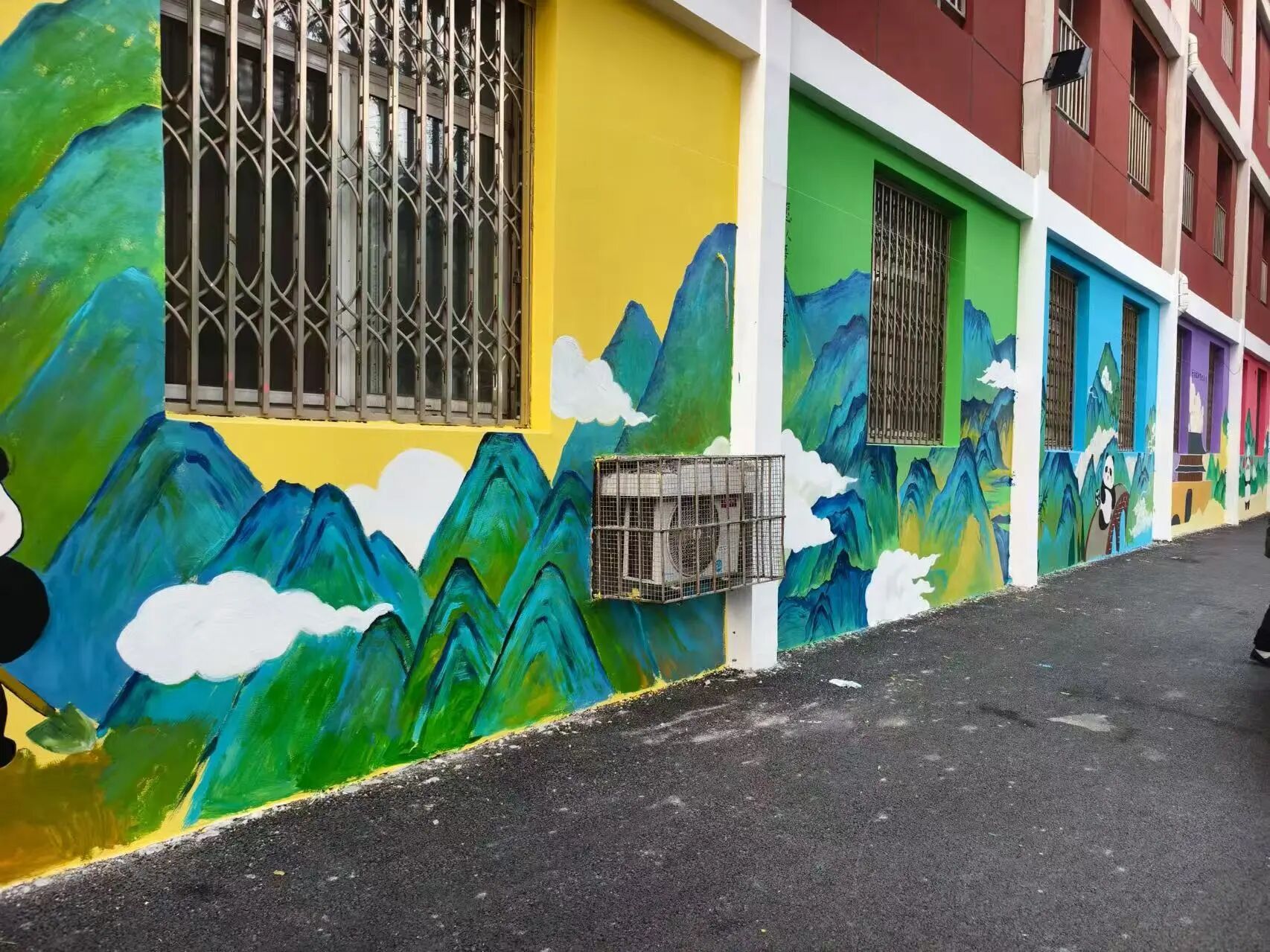 鲁迅美术学院的同学带来油画般的色彩层次技法,辽宁大学的伙伴分享了对沈阳老工业区文化的调研笔记,多校跨界协作,让 “最美上学路” 的创作不止是 “画一幅墙绘”,更是一次 “校园青春文化” 与 “城市历史记忆” 的深度对话。