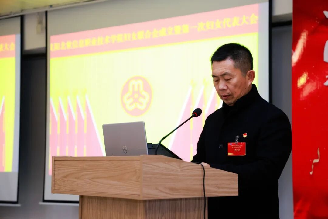 党委副书记刘健宣读《关于同意成立沈阳北软信息职业技术学院妇女联合会的批复》