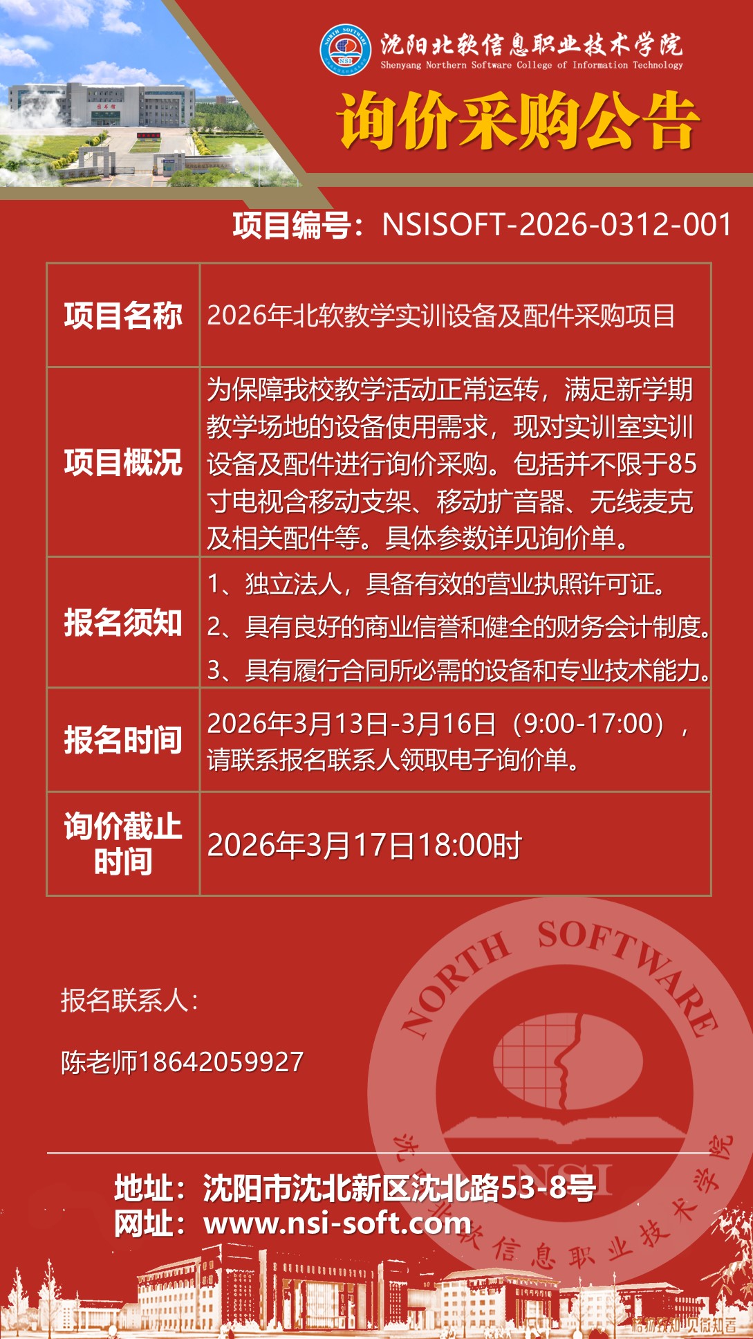 >>2026年北软教学实训设备及配件采购项目